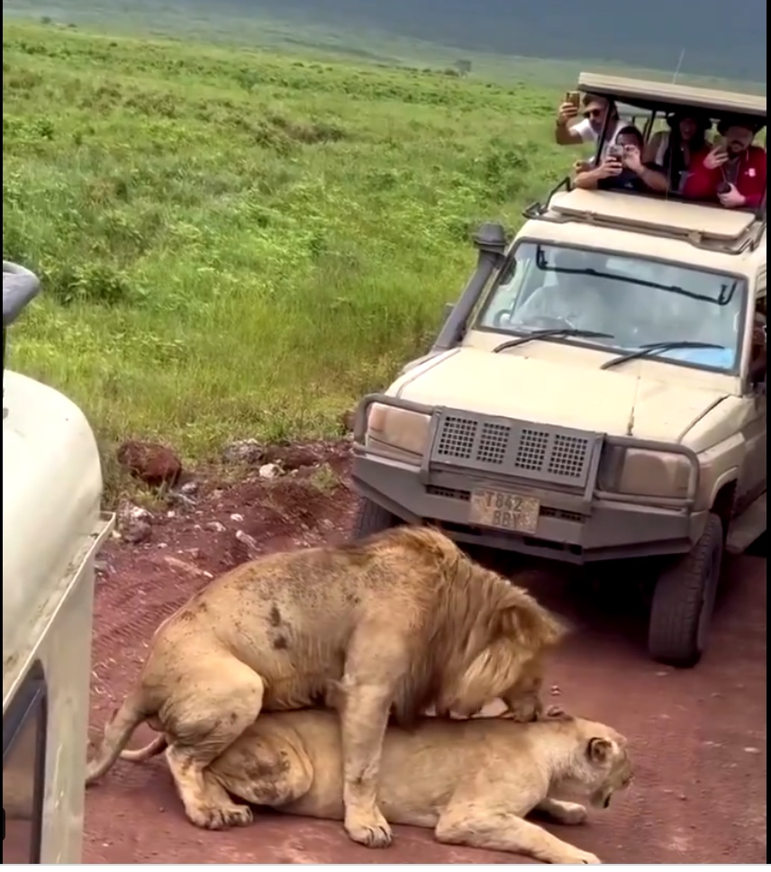 アフリカではすべてが本当に野生的ですが、こんなに多くの人々が交尾を見守っていると、ライオンたちは本当に恥ずかしがっているようで、二匹とも手早く済ませてしまいます。