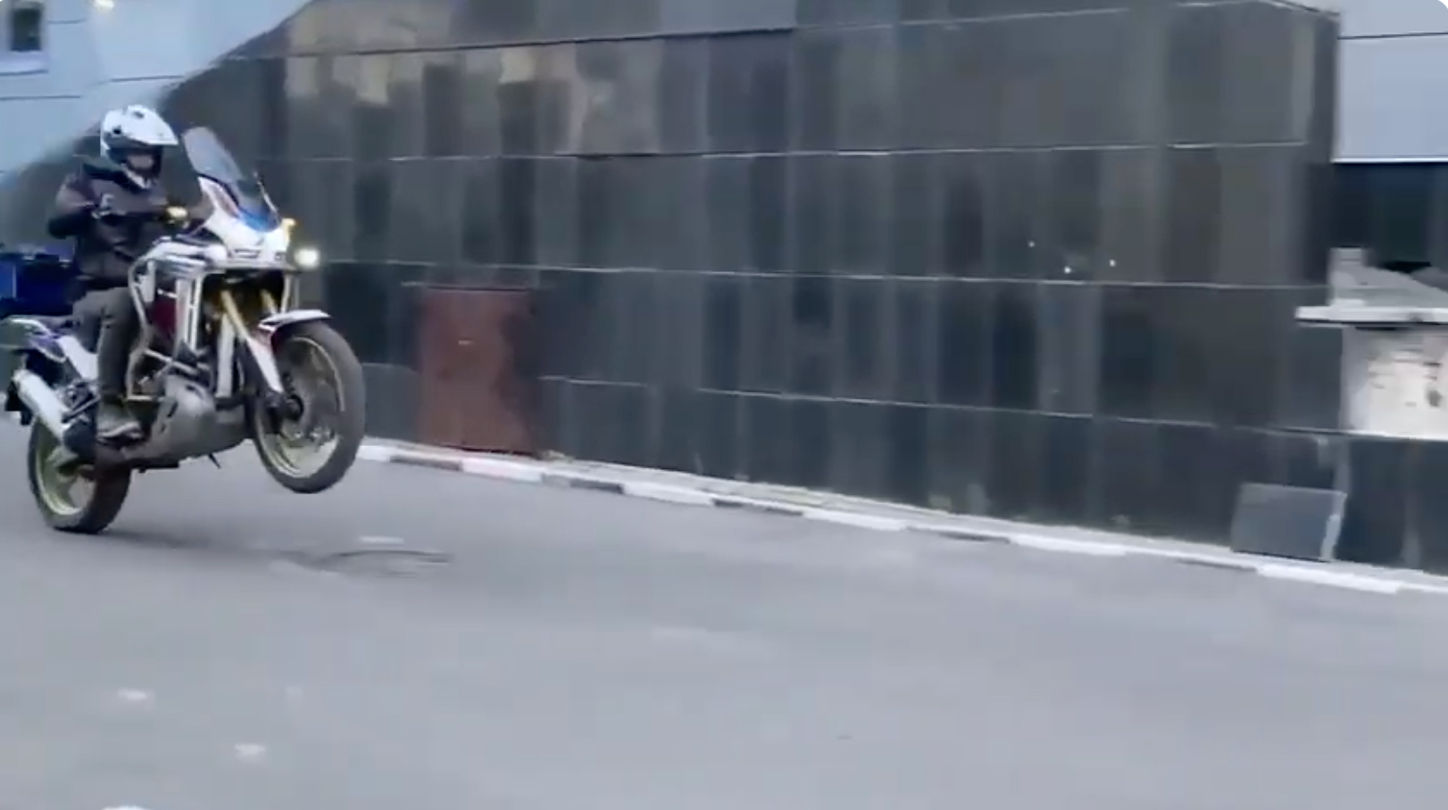 ホンダ・アフリカツインは、排気量1084CCで、ほぼ100馬力の力を持つバイクです。ある瞬間、ライダーのヘルメットが逆さまに被っていると思いました!